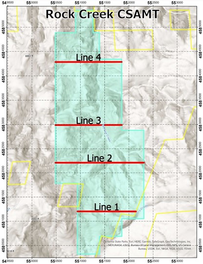 Figure 1: Proposed CSAMT Lines at Rock Creek