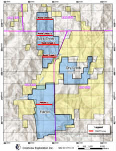 The Rock Creek property consists of 74 unpatented lode mining claims, and is in close proximity to Gold Runner’s Divide and Falcon properties which comprise an additional 186 claims, for a total of approximately 2,009 hectares (4,965 acres) between the three. Small historical prospecting occurred at all three properties, and more extensive historic mining occurred at Falcon and Divide.
